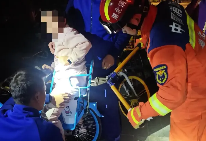 亲子共享单车看似带孩子方便,却暗藏安全隐患。此前,武汉东湖风景区绿道内,一名8岁女童与家长租用共享亲子车游玩,女童入座后因车身座椅适配问题,意外被困座椅内。武汉东湖生态旅游风景区消防救援大队张逸告诉记者,所幸消防人员及时破拆救援,孩子未受伤。